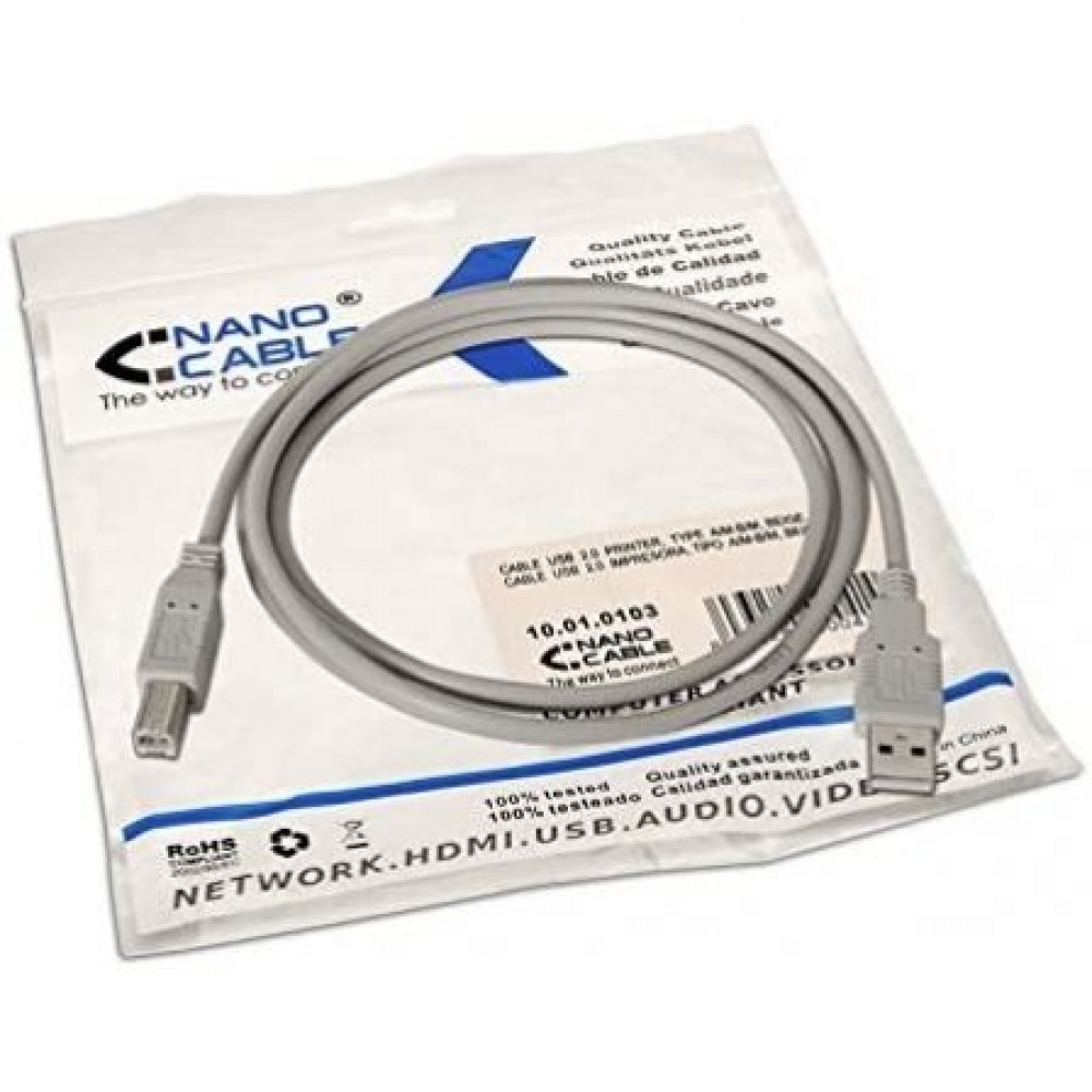 Cable USB 2.0 Impresora Nanocable 10.01.0103/ USB Macho - USB Macho/ 1.8m/ Beige