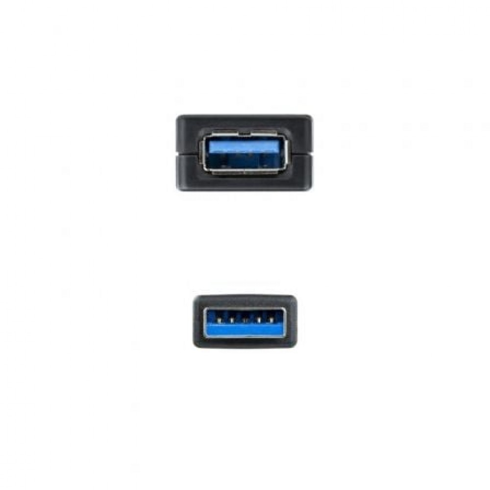 Especificaciones:. Cable prolongador USB 3.0 con conector tipo A macho en un extremo y tipo A hembra en el otro.. Lleva amplificador para amplificar la señal de USB.. Máxima velocidad de transferencia: 5Gbps.. Es una solución ideal para necesidades de cable USB con longitud de más de 5 metros hasta un máximo de 20 metros (uniendo 4 cables prolongadores con alimentador).. No requiere software ni controladores, una solución totalmente plug and play.. Compatible con USB 2.0.. Longitud: 5 m.. Color: negro.. Normativas: RoHS.. Test de Funcionamiento: 100% testado.. Contenido del embalaje:. 1 x Cable USB 3.0 prolongador con amplificador, tipo A/M-A/H, 5 m