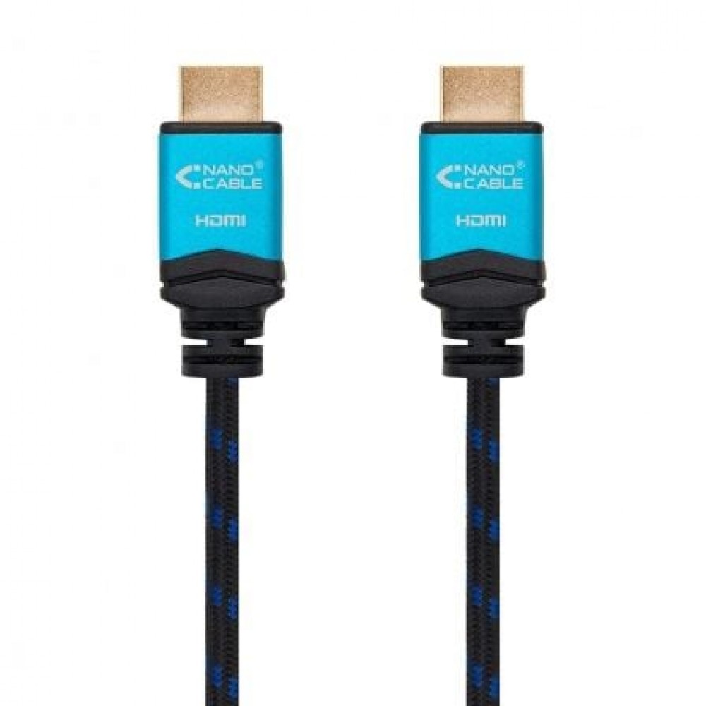Cable HDMI 2.0 4K Nanocable 10.15.3701/ HDMI Macho - HDMI Macho/ 1m/ Negro/ AzulCable HDMI V2.0 con conector tipo A macho en ambos extremos.Conectores de alta calidad blindados en oro de 24K.Acabado con recubrimiento de nylon.Velocidad hasta 18 Gbps.Múltiple apantallamiento para la máximo reducción ..