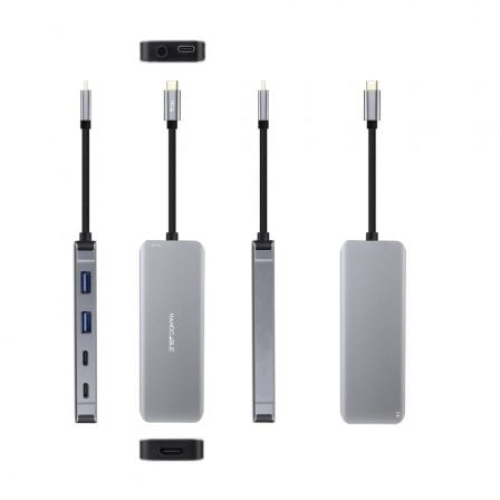 - Hub USB-C 3.2 GEN1 macho en un extremo y 2 puertos USB 3.0 tipo A hembra, 3 puertos USB 3.0 tipo C hembra, 1 puerto HDMI hembra en el otro
