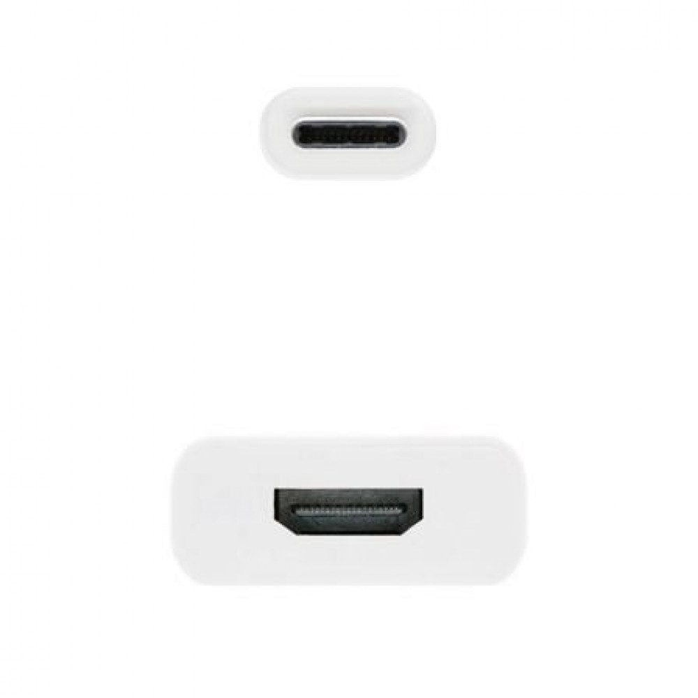 Conversor USB-C a HDMI, con conector USB Tipo-C macho en un extremo y HDMI 4K hembra en el otro.. Especificaciones:. El puerto HDMI soporta la resolución máxima 4kx2k@30HZ.. Soporta HDCP.. Compatible con Macbook Pro, Macbook con puerto Thunderbolt 3, Google Chromebook.. No requiere software ni controladores, una solución totalmente plug and play.. Longitud: 15 cm.. Color: blanco.. Normativas: RoHS.. Test de Funcionamiento: 100% testado.