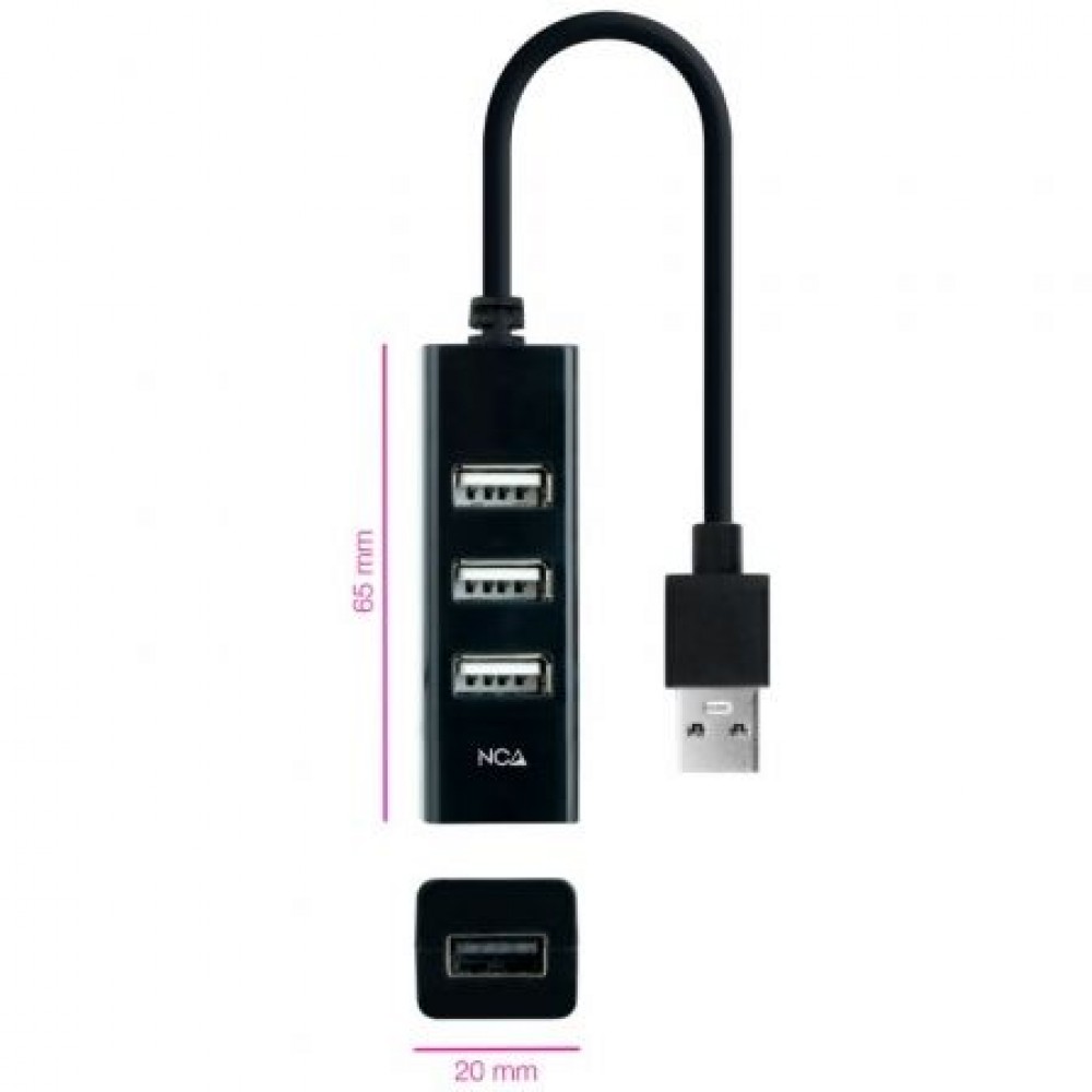- Hub USB 2.0 4 puertos USB 2.0, con conector USB 2.0 Tipo A en un extremo y 4 puertos USB 2.0 Tipo A hembra en el otro.