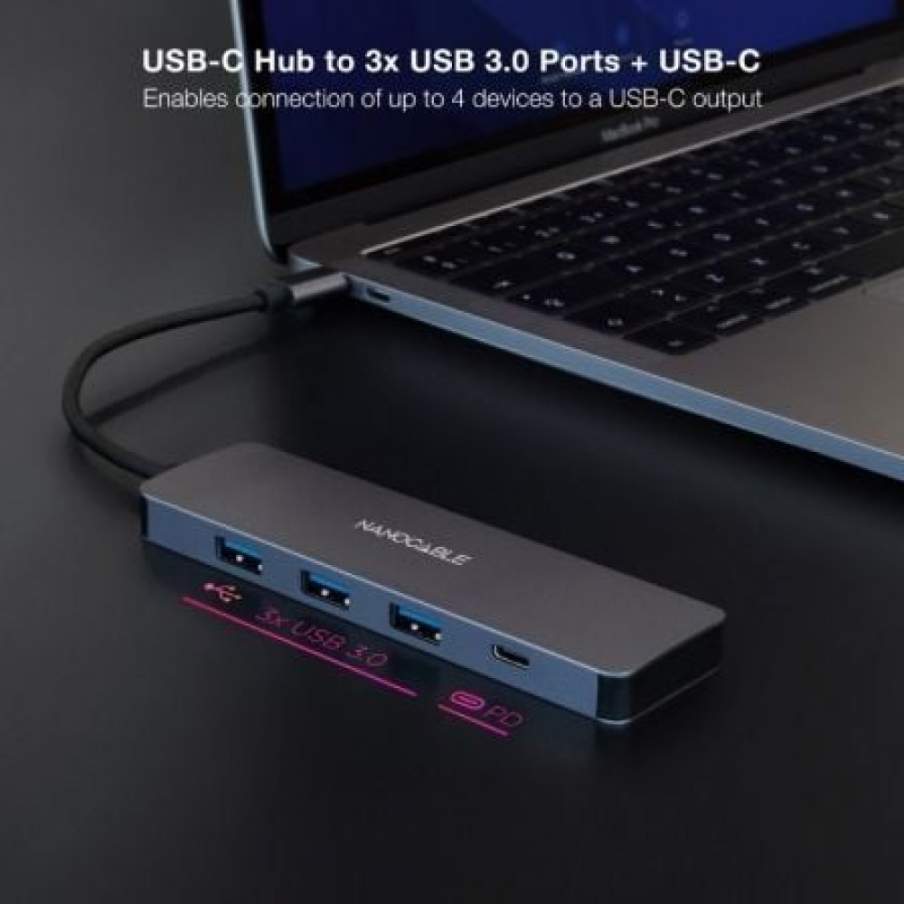 Permite conectar a una salida USB-C hasta 4 dispositivos (3 tipo A y tipo C)