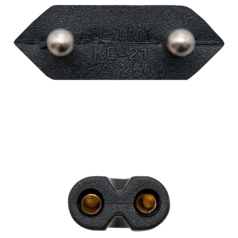Cable de alimentación con forma 8 para cargar portátiles, equipos audiovisuales, consolas, y otros dispositivos electrónicos de baja potencia (consumo inferior a 1500W). Fabricado con conductor 100% cobre de AWG18.