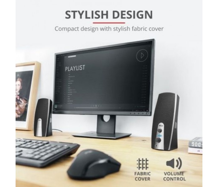 Altavoces Trust Arys/ 28W/ 2.0Juego de altavoces Premium de diseño con sonido rico en matices y bajos profundos, para PC y ordenadores portátilesEspecificaciones técnicas Potencia máxima de 28 W (RMS de 14 W) Control de volumen de gran tamaño, iluminado y de fácil acceso en el frontal Rejilla m..