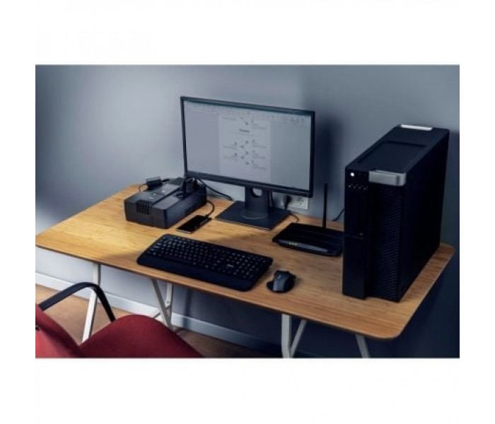 Todas las tomas de corriente están protegidas contra sobretensiones, y la función de regulación automática de la tensión (AVR) corrige automáticamente tensiones demasiado altas o bajas para asegurar un voltaje de salida estable de 230 V. El SAI Maxxon también protege el hardware contra daños causados por sobretensiones, picos y fluctuaciones de la red eléctrica.Multiuso
