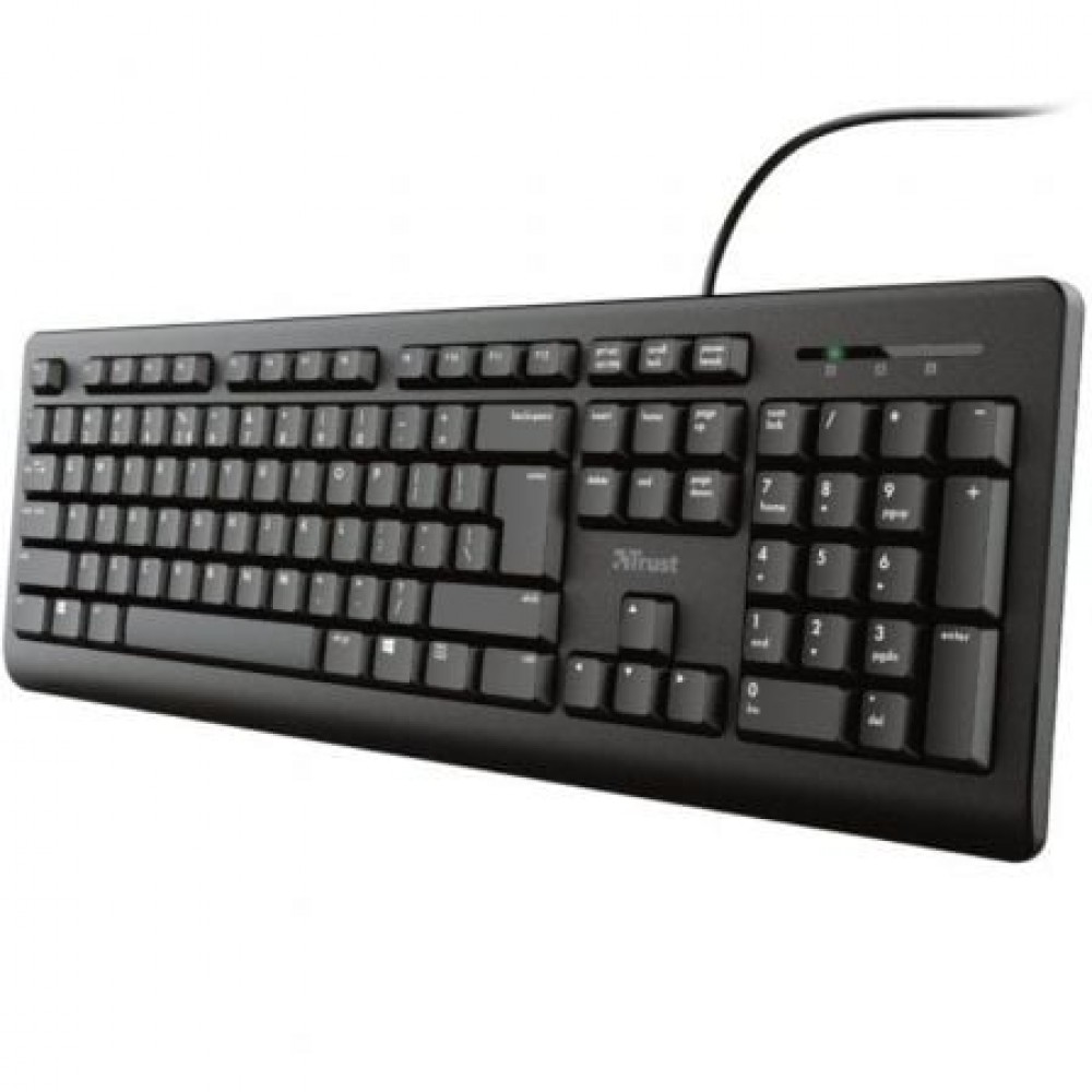 Apostar por lo básicoHay teclados de todas las formas y medidas, ¿pero qué pasa si uno solo quiere algo básico? Eso es lo que ofrece exactamente el TK-150 de Trust. Tiene un diseño de tamaño completo, teclas resistentes al vertido de líquidos y permite ajustar su altura. Incluso se suministra en un paquete fácil de abrir y sostenible, con lo que se contribuye a respetar el medio ambiente y se ahorra tiempo. El teclado TK-150 responde exactamente a las necesidades de cada usuario.ComodidadUn buen teclado tiene que resultar cómodo. Las teclas de perfil bajo de este teclado de tamaño completo y los soportes plegables proporcionan precisamente la comodidad necesaria que facilita la concentración en el trabajo. No hay que preocuparse de si cae algún líquido en el teclado TK-150, ya que su diseño resistente a los vertidos permite seguir trabajando sin problemas. Así que sírvase otra taza de café y a por todas.FácilConecte el cable USB de 180 cm y listo. Cuando hay trabajo por hacer, a nadie le gusta tener que preocuparse por la instalación de software o la configuración de macros. El teclado TK-150 es un caballo de batalla que permite centrarse en el trabajo.