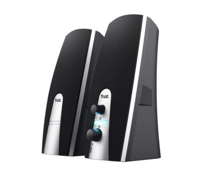 Compacto juego de altavoces estéreo con potencia de salida RMS de 5 Vatios (máx. potencia: 10 vatios). . Especificaciones:. . Features. . Power saving: no. NFC: no. Hands-free phone calls: no. Tripod mount: no. . Size & Weight. . Total weight: 520 g. Depth of main product (in mm): 95 mm. Width of main product (in mm): 75 mm. Height of main product (in mm): 185 mm. . Control. . Remote control: no. Controls: volume, on/off. . Connectivity. . Connection type: wired. Bluetooth: no. Cable length audio cable: 120 cm. Cable length satellite cable: 120 cm. . Audio. . Power output (peak): 10 W. Power output (RMS): 5 W. Frequency response: 100 Hz - 20.000 Hz. Driver size: 80 mm. Driver units: 2. Audio input: 3.5 mm. Audio output: 3.5 mm. Headphone connection: yes. Microphone built-in: no. Microphone connection: no. Speaker impedance: 4 Ohm. Input impedance: 10000 Ohm. . Lighting. . Lights: no. . Protection. . Waterproof: no. . Power. . Power cable detachable: no. . Input. . Power source: USB. . Satellites. . Satellite Height (mm): 185 mm. Satellite Width (mm): 75 mm. Satellite Depth (mm): 95 mm. . Compatibility. . Compatible Device Types: pc, laptop. Compatible Consoles: no. General compatibility: pc with 3.5mm audio output and USB port