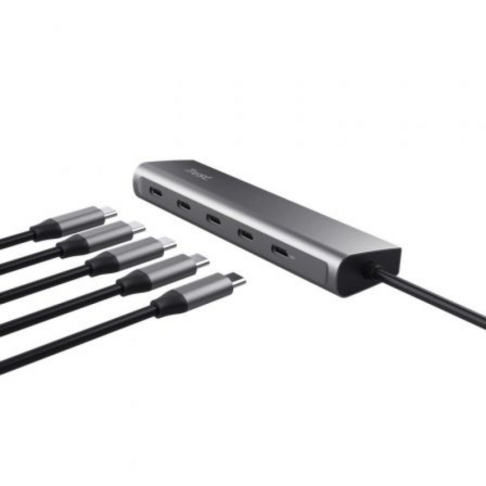 Un hub USB-C de aluminio añade 4 puertos USB-C adicionales y 1 puerto de alimentación pass-through al portátil