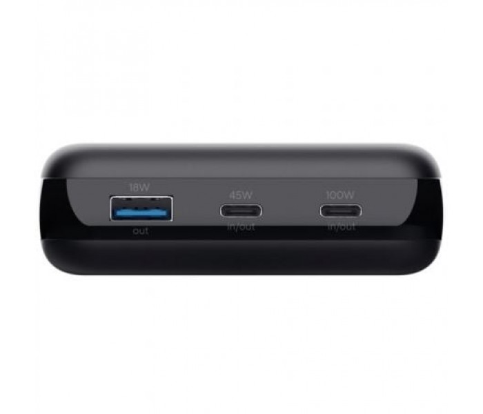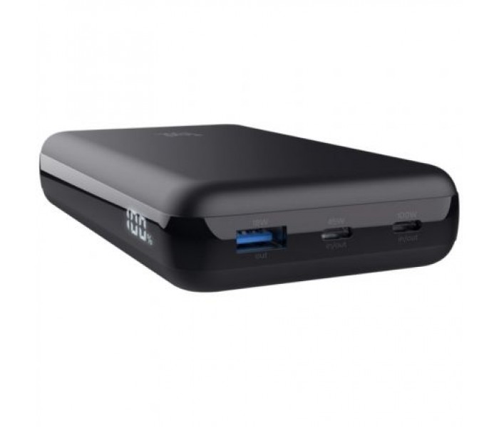 Menos plástico, más potencia. Dele un impulso a su portátil y al planeta con la batería externa para portátiles Laro de 100 W. Diseñada pensando en la sostenibilidad, esta batería externa está hecha de un 50 % de plástico reciclado y, por su carga rápida, puede prolongar la vida útil de la batería del portátil el doble de tiempo. También puede cargar hasta 3 dispositivos al mismo tiempo a través de los 2 puertos USB-C y 1 USB-A.. . Especificaciones:. . Plastic material ABS/PC. Sustainability method PCR. Total weight 407 g. Weight of main unit 407 g. Height of main product (in mm) 27 mm. Width of main product (in mm) 83 mm. Depth of main product (in mm) 144 mm. Number of USB ports 3. Cable length main cable 15 cm. Input power 100W / 45W. Charging technology Quick Charge 3.0 auto-detect USB PD 3.0 + PPS. Max output amperes 5 A. Output voltage 5 9 12 15 20. Total max output power (W) 100 Watt. Power cable length 15 cm. Laptop voltage range 5 - 20 V. Compatible Device Types laptop smartphone tablet