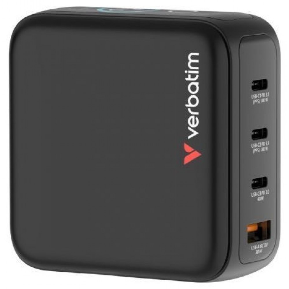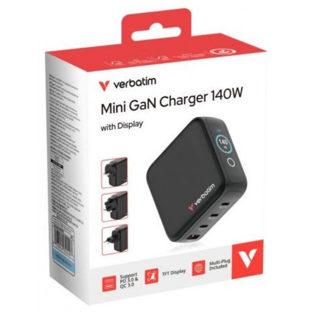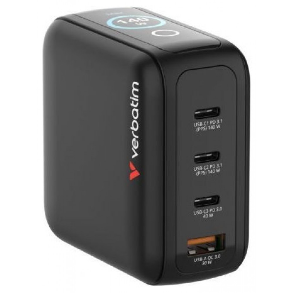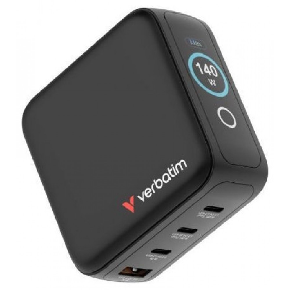 Mini cargador GaN Verbatim de 140 W con pantalla