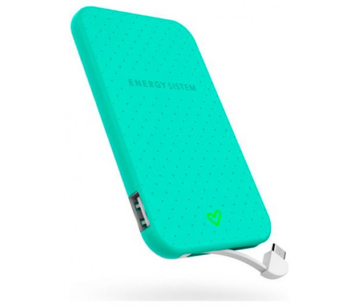 Extra Battery 2500 Mint Un extra de color y energía para la batería de tu smartphone Batería portátil recargable de 2500 mAh para smartphones. Con un diseño ultradelgado y práctico tamaño de bolsillo, indicador LED de carga y cable integrado, se convierte en un complemento perfecto que querrás llevar siempre contigo. Batería portátil con 2500 mAh de capacidad. Perfecta para smartphones incluido Android / iOS*. Diseño ultradelgado y compacto. Indicador LED de carga con diferentes colores en función del estado de la batería. Doble salida USB para poder cargar dos dispositivos a la vez y conectar tu propio cable de carga. Recargable a través de entrada microUSB. Cable de carga integrado con salida microUSB. Adaptador USB tipo C incluido. Salida USB para conectar tu propio cable de carga. Batería precargada para uso inmediato. Batería de polímero de litio, más fiable, eficaz y ligera. Permite almacenar la carga a largo plazo con mínima perdida.* Conector iPhone/iPad no incluido. BATERÍA: Capacidad: 3.7V/2500mAh. Tipo: polímero de litio CONECTIVIDAD: Entrada: microUSB de 5V / 1000mA a través de fuente USB estándar de 5V. Salidas: microUSB 5V / 1000mA máx, USB 5V / 1000mA máxCOMPATIBILIDAD: iOS*, Android?, Windows Mobile® y Blackberry®.* Conector iPhone/iPad no incluido.OTROS: Sistema de protección contra sobrecarga, descarga, pico de tensión y corto circuito. Indicador LED de carga. Sistema de ahorro de energía auto apagado. Circuito inteligente que permite recargar la Extra Battery y tu dispositivo simultáneamente. * La batería del producto tiene un período de garantía de 24 meses.*+ DIMENSIONES Y PESO 103 x 62 x 7 mm 60 g
