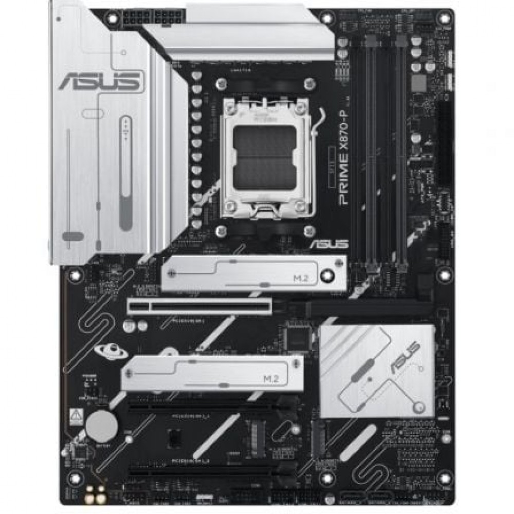 La placa base PRIME X870-P está diseñada con varios disipadores térmicos integrados y una serie de cabezales de ventilador híbridos para ayudar a garantizar que tu equipo se mantenga fresco y estable bajo cargas de trabajo intensas.