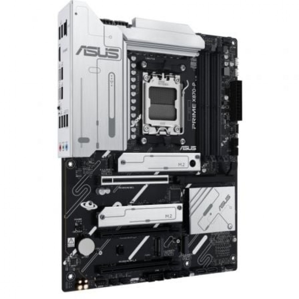 PRIME X870-P ofrece un total de cuatro ranuras M.2, incluida una que admite velocidades de transferencia de datos de hasta 128 Gbps mediante PCIe 5.0, dos que admiten 64 Gbps mediante PCIe 4.0 y una que admite PCIe 3.0. Esto permite tiempos de arranque y carga de aplicaciones más rápidos con unidades de SO o aplicaciones