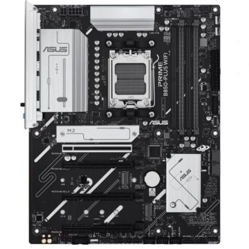 ASUS PRIME B850-PLUS WIFI. Fabricante de procesador: AMD, Socket de procesador: Zócalo AM5, Procesador compatible: AMD Ryzen 7000 Series, AMD Ryzen 8000 Series, AMD Ryzen 9000 Series. tipos de memoria compatibles: DDR5-SDRAM, Memoria interna máxima: 256 GB, Tipo de ranuras de memoria: DIMM. Interfaces de disco de almacenamiento soportados: M.2, SATA III, Tipos de unidades de almacenamiento admitidas: HDD & SSD, Niveles RAID: 0, 1, 5, 10. Tipo de interfaz ethernet: 2.5 Gigabit Ethernet, Estándar Wi-Fi: Wi-Fi 6E (802.11ax). Componente para: PC, Factor de forma: ATX, Familia del chipset: AMD