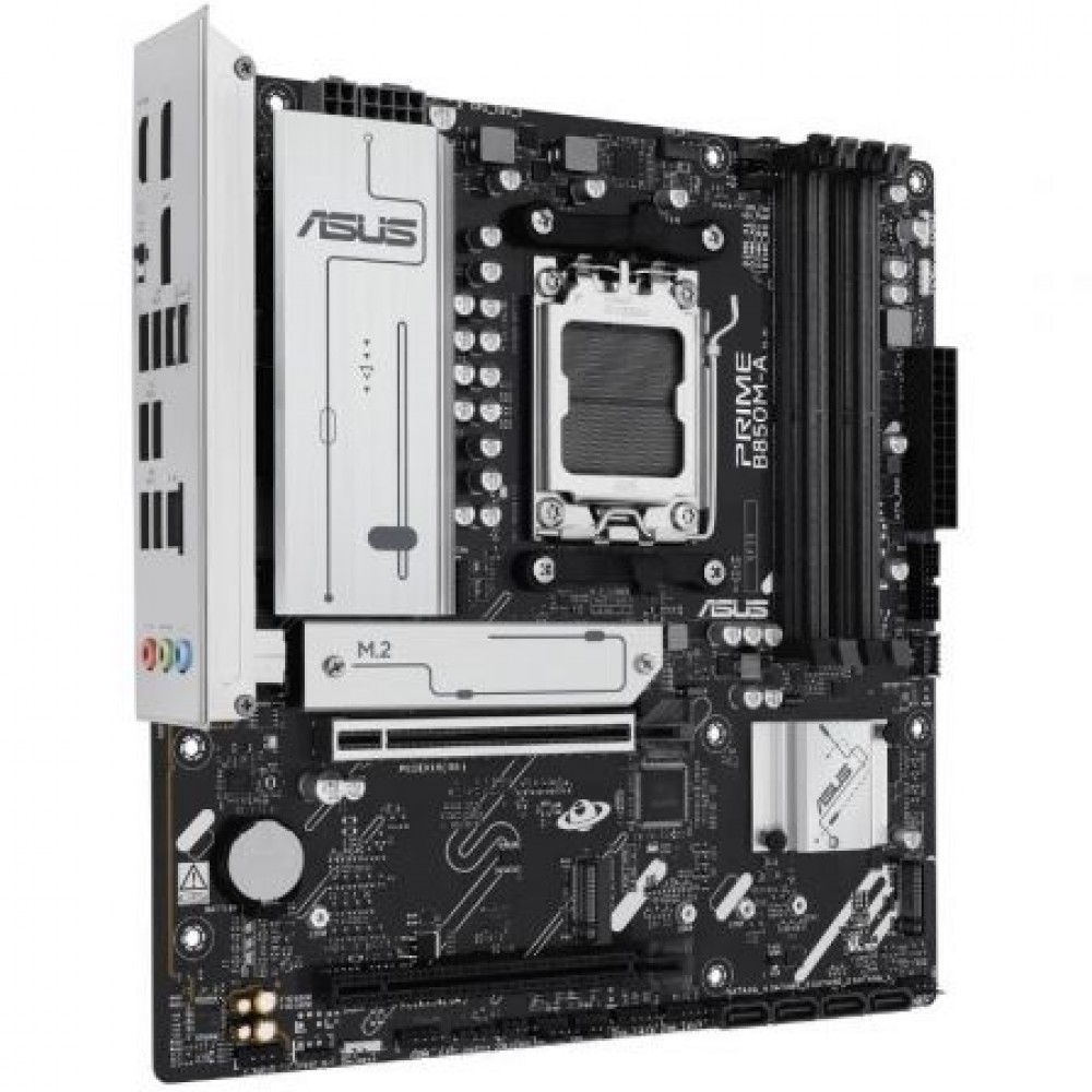 PRIME B850M-A-CSM presenta un diseño de alimentación de fase 8+2+1 con MOSFET discretos, lo que garantiza un suministro de energía eficiente y estable para los procesadores AMD además de un rendimiento constante para el uso diario.
