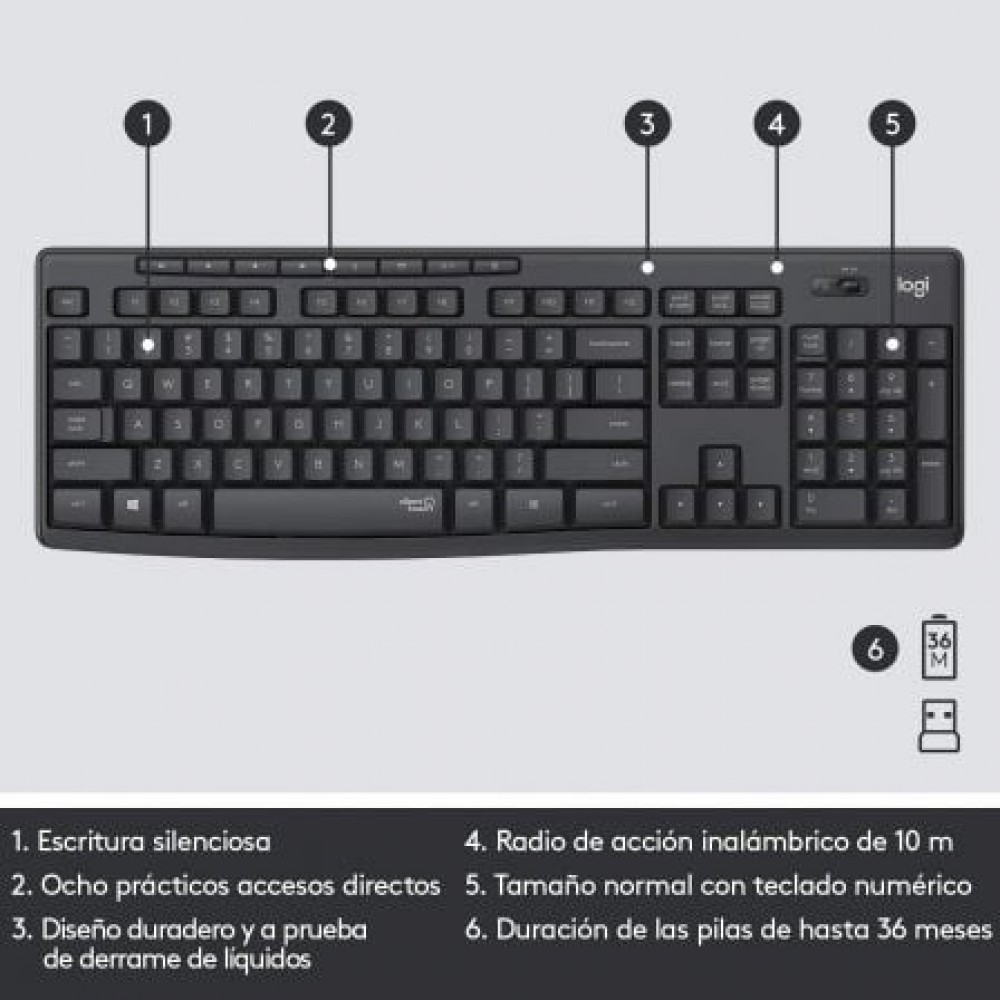 Teclado y Ratón Inalámbricos Logitech MK235Duración de pilas prolongada Escribe hasta tres años entre cambios de pilas y usa el ratón hasta un año antes de tener que cambiar la pila. La predicción de tres años de duración de las pilas se basa en aproximadamente dos millones de pulsaciones por año en..