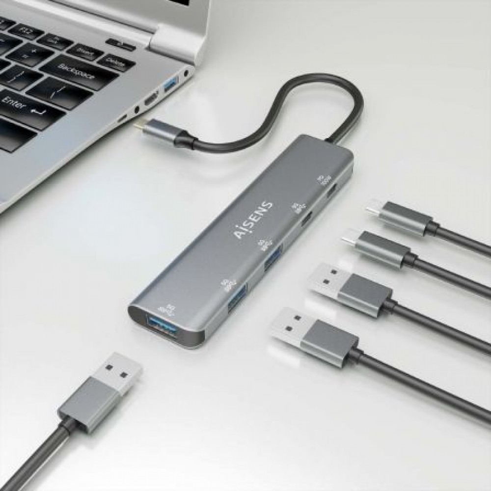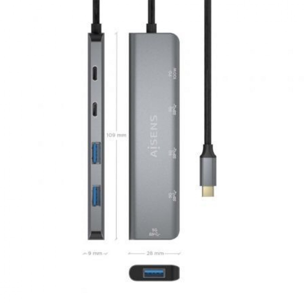- Hub USB 3.2 Gen1 5G, 1 x USB-C PD100W hembra, 1 x USB-C 5G hembra y 3 x USB-A 5G hembra a USB3.2 Gen1 USB-C macho