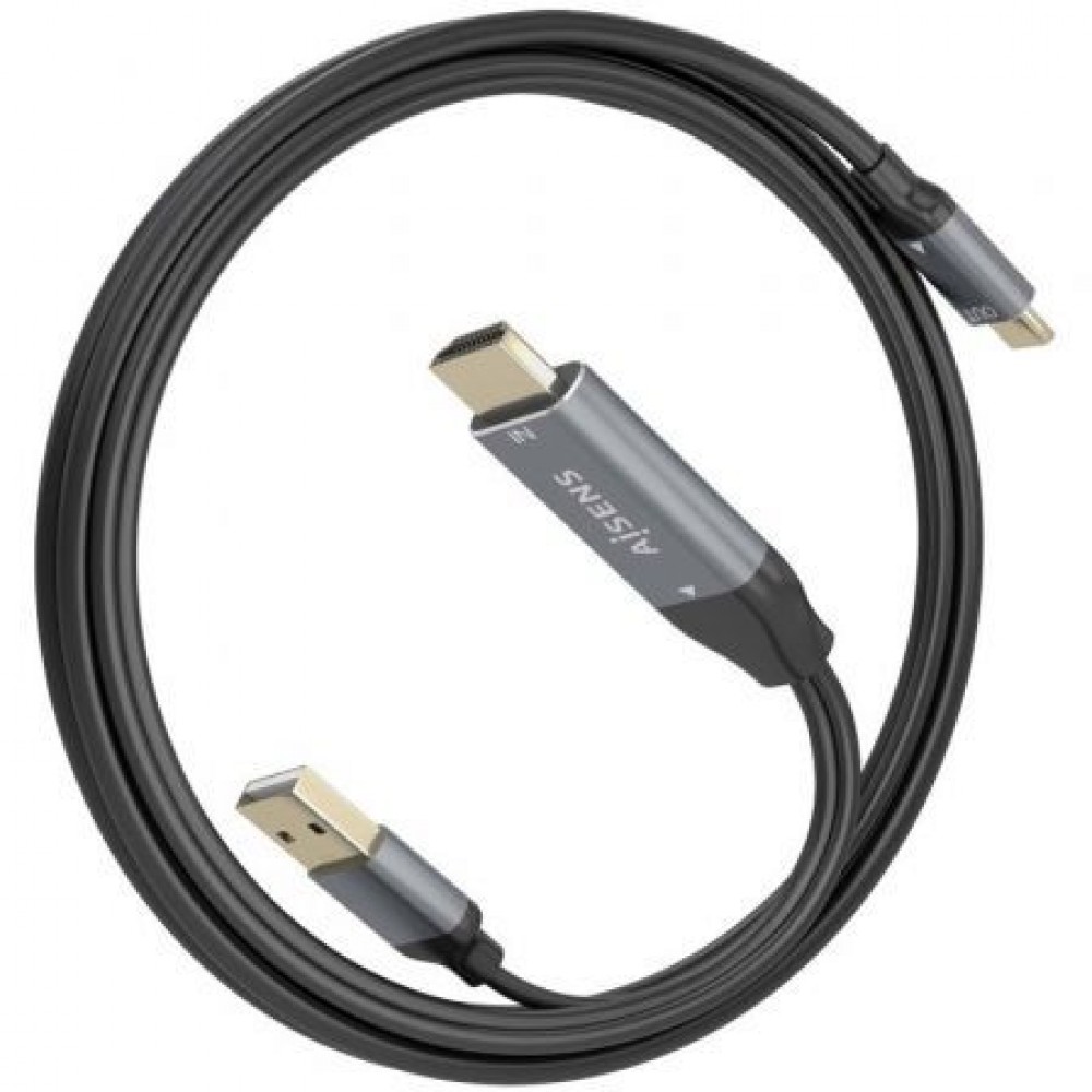 AISENS - CABLE CONVERSOR ALUMINIO HDMI V2.0 A USB-C 4K@60HZ, HDMI/M+USB-A/M-USB-C/M, NEGRO, 1.8M