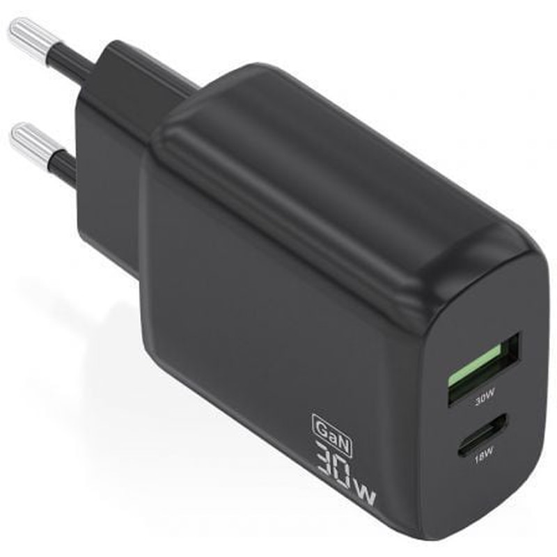 - Cargador GaN USB-C 30W para cargar portátiles, móviles, cámaras y tablets. Diseño elegante, moderno y práctico.