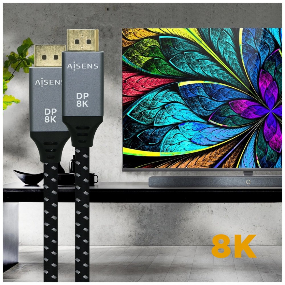 - Cable DISPLAYPORT V1.4 8K con conector DP macho (20 Pines) en ambos extremos.