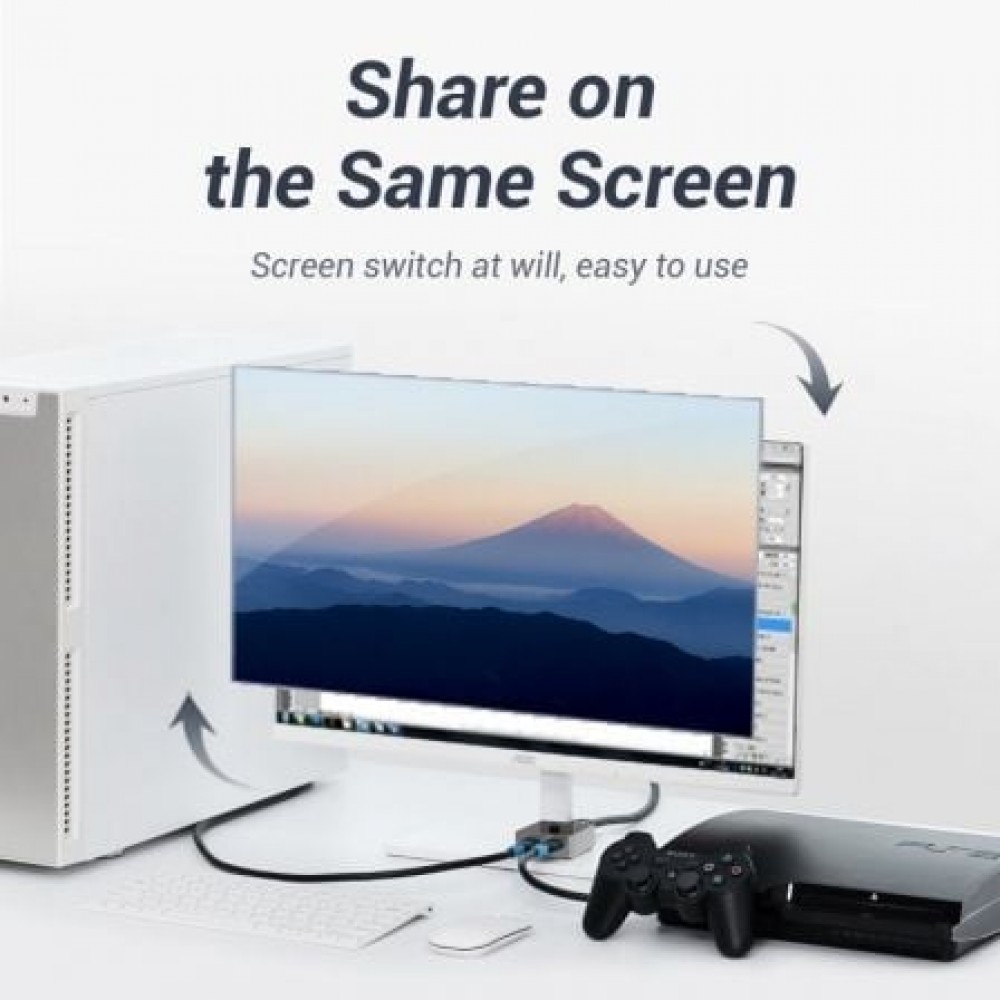 Es compatible con una amplia variedad de dispositivos como ordenadores, portátiles, monitores, consolas PS4, Switch, Xbox, TV Box, televisores y proyectores. Resulta perfecto tanto para entornos de oficina como para ocio y gaming, permitiendo compartir una misma pantalla entre distintos equipos de forma práctica.