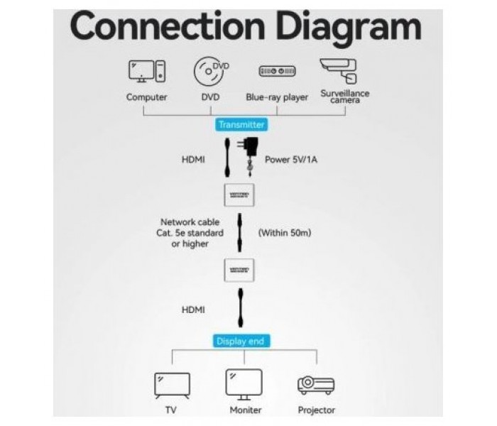 Vention Extensor de cable de red HDMI de 60 m, aleación de aluminio gris, estándar de la UE