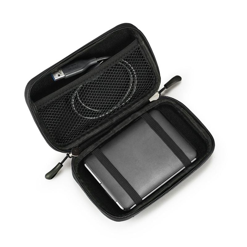 HDD Business Case es una funda rígida dedicada a proteger tu Disco Duro o Power Bank. Su diseño y materiales son elegantes y modernos.\\nCompatible con la mayoría de los discos de 2.5 "" (dimensiones internas máximas de 13.5 x 8.4 x 2 cm).\\nSu estructura consiste en una carcasa de EVA (plástico muy rígido) y espuma en el interior para una protección óptima contra los golpes.\\n\\nSu diseño permite que esta cubierta absorba los golpes en caso de caída.\\n\\nEn el interior, una banda elástica asegura tu disco duro durante el transporte. También encontrarás un bolsillo para almacenar el cable de alimentación o una llave USB, por ejemplo.\\n\\nEsta funda tiene un tamaño compacto, puede guardarla fácilmente en su bolso o en un cajón de su escritorio.\\n\\nOfrecemos esta funda en 3 colores elegantes: negro, gris y azul. No dudes en utilizar diferentes colores si tienes varios discos duros para proteger y así distinguirlos más rápidamente.\\n\\nDoble Tirador\\nSistema de doble tirador para que te resulte mucho más sencillo su apertura y rápido uso.\\n\\nResistente y Ligera\\nFabricada con ABS en su interior que ofrece una alta protección además de ser muy ligera.\\n\\nInterior\\nInterior reforzado y suave para proteger tu dispositivo. Bolsillo de malla para guardar accesorios.
