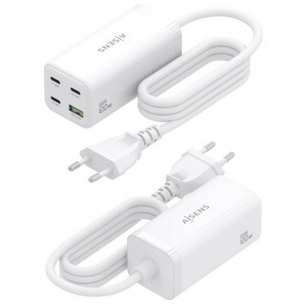AISENS - CARGADOR SOBREMESA GaN 100W, 3xUSB-C PD3.0 QC4.0 QC5.0, 1xUSB-A QC3.0, BLANCO