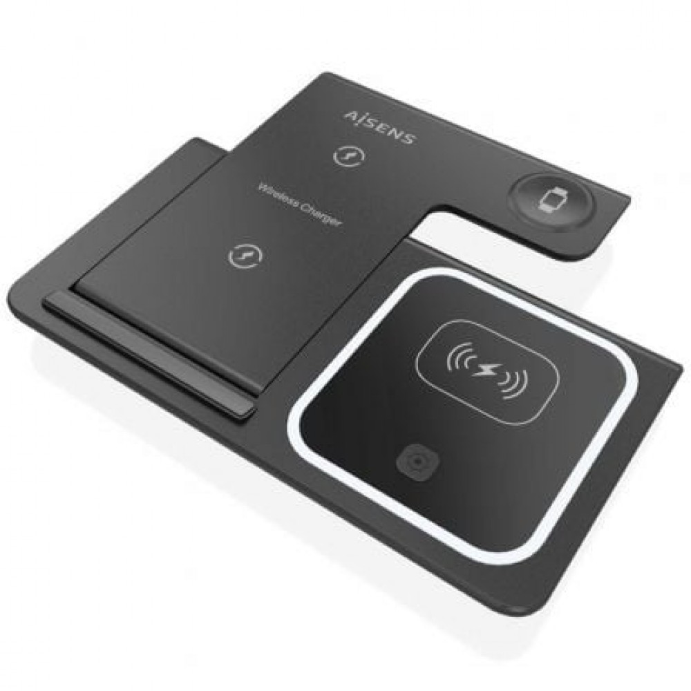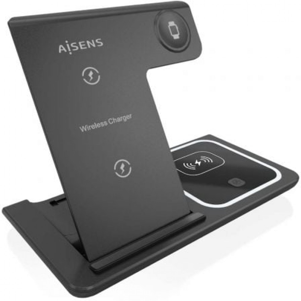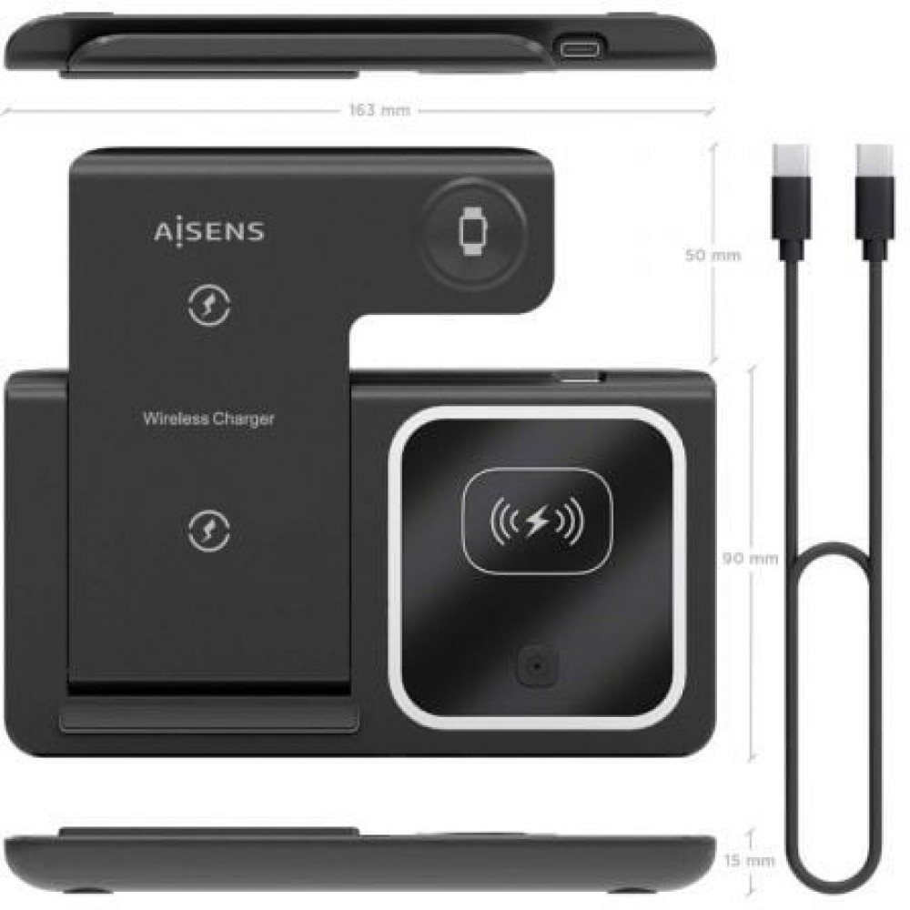 AISENS - CARGADOR INALAMBRICO USB-C 3 EN 1 DE 15W PARA MOVIL, APPLE WATCH, ARICULARES CON ESTUCHE DE CARGA, NEGRO