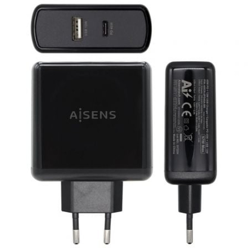 AISENS - CARGADOR 57W, 1xUSB-C PD3.0 45W, 1xUSB-A 5V/2.4A 12W, NEGRO