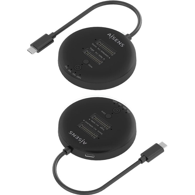 AISENS - ESTACION DE DOCKING DE DOBLE BAHIA NVMe A USB 3.2 GEN2x2, CLONE, NEGRO