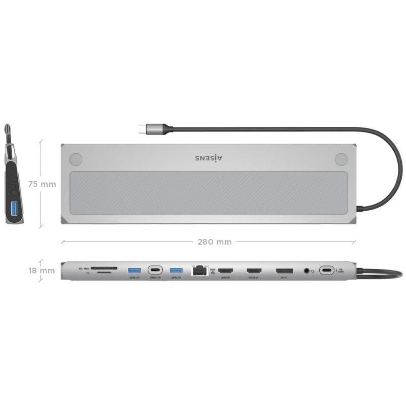 AISENS - USB-C Dock 12 en 1, 30 cm, Gris