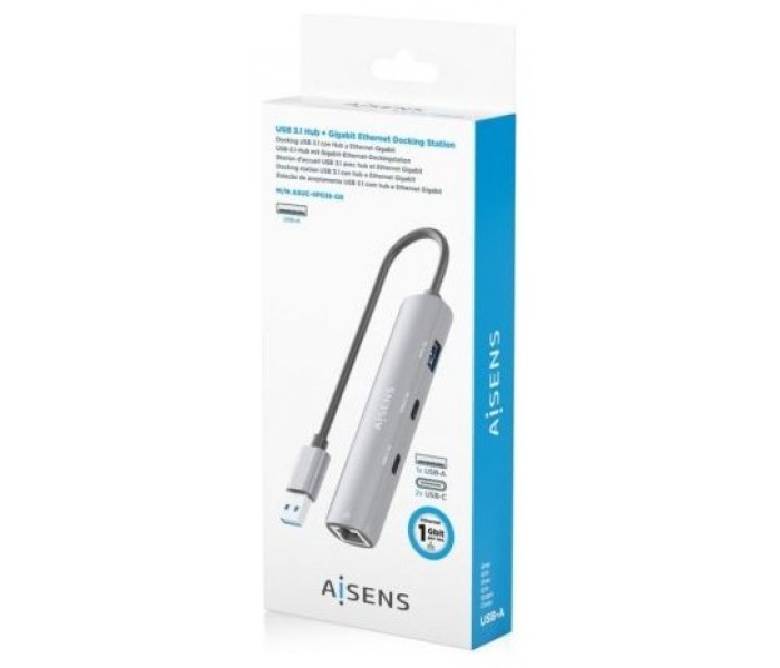 ASUC-4P036-GR – USB3.0 Dock USB-A a Ethernet Gigabit + HUB 2xUSB-C+1xUSB-A, Gris, 15cm