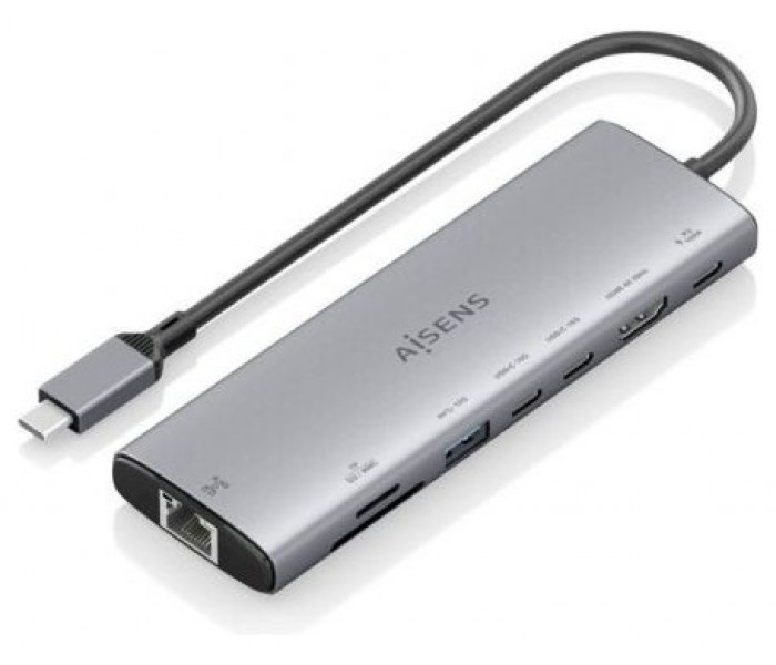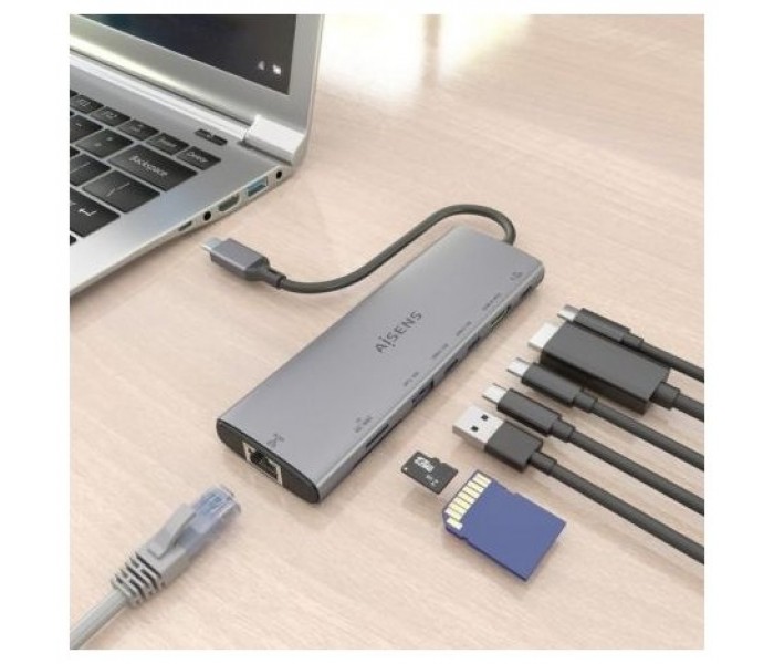 ASUC-8P033-GR – USB-C Dock 8 en 1, USB-C a 1xHDMI, 1xRJ45, 1xUSB-A 10G, 2xUSB-C 10G, 1xSD, 1xMicro SD, 1xUSB-C PD 100W, Gris, 20CM