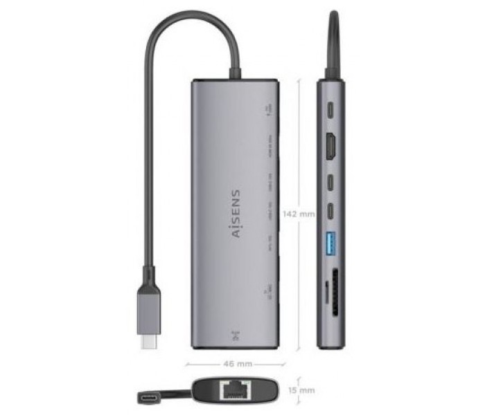 - Conversor USB-C a 1xHDMI, 1xRJ45, 1xUSB-A 10G, 2xUSB-C 10G, 1xLector de tarjeta SD, 1xLector de tarjeta MICRO SD, 1xUSB-C PD 100W.