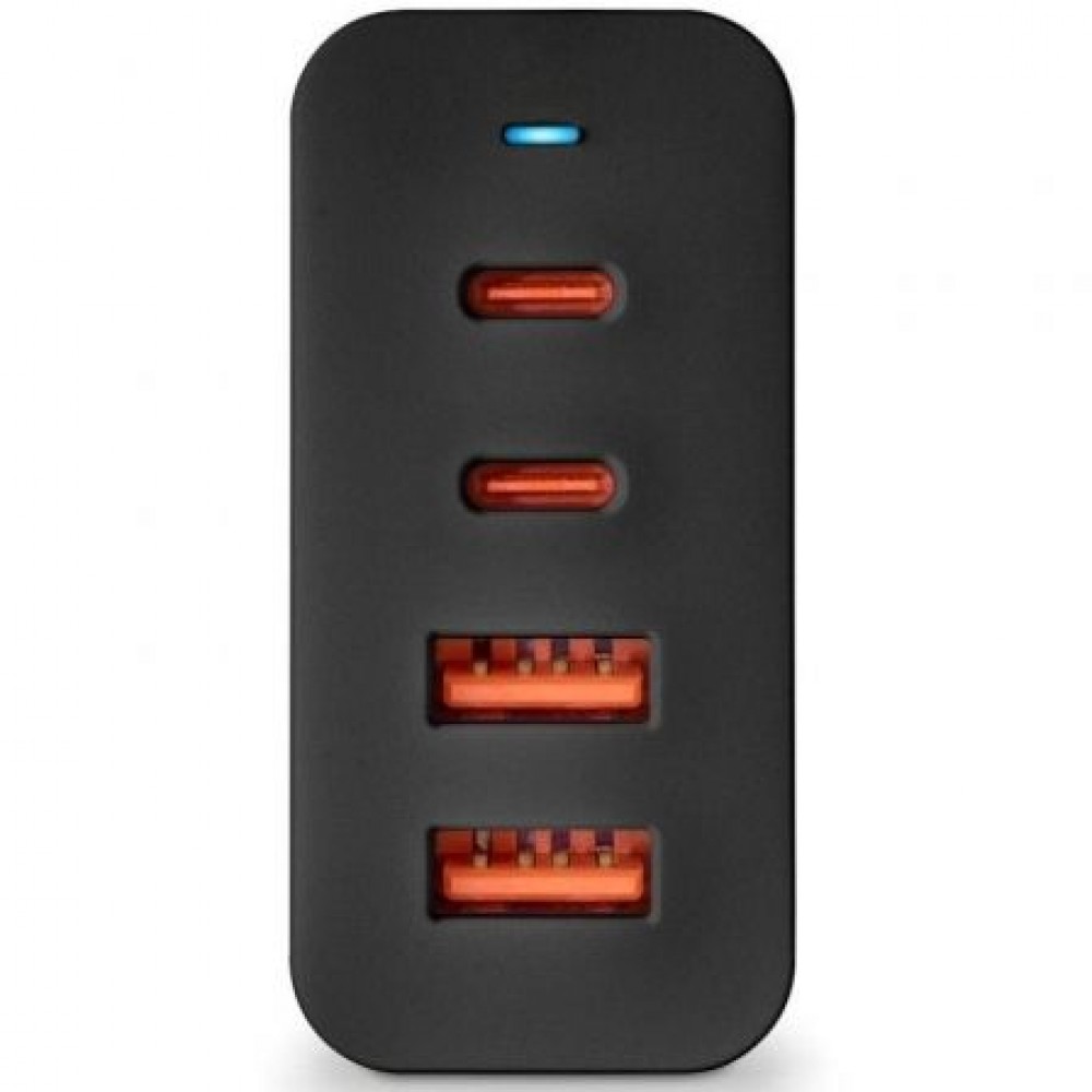 Cargador de pared con 2 salidas USB-C (PD & PPS) y 2 salidas USB-A QC 3.0 de 100W de potencia máxima para cargar dispositivos de manera rápida y eficiente.. Fabricado en GaN y materiales ignífugos es el cargador ideal para smarphones, tablets y ordenadores portátiles.. Es un cargador inteligente que permitirá una carga más eficiente de la batería del dispositivo alargando la vida del mismo.. Su diseño con 4 puertos permite cargar 4 dispositivos simultáneamente de forma segura y estable minimizando el tiempo de espera. . Compatible con todos los móviles y dispositivos de carga USB.. Diseño compacto y portátil.. Potencia de entrada: 100-240V, 50/60Hz, 3A. Salida:. . USB-C 1/2: PD 3.0. 5V-3A, 9V-3A, 12V-3A, 15V-3A, 20V-5A (100W Max.). PPS: 3.6-21V / 4.7A. USB-A 1/2: QC 3.0. 5V-3A, 9V-3A, 12V-2.5A, 20V-1.5A (30W Max.). C1+C2: PD60W+PD20W. C1/2+A1/2: PD60W+QC30W. C1+C2+A1/2: PD60W+PD20W+QC18W. C1/2+A1+A2: PD60W+7.5W+7.5W. A1+A2: 7.5W+7.5W. C1+C2+A1+A2: PD60W+PD20W+7.5W+7.5W6