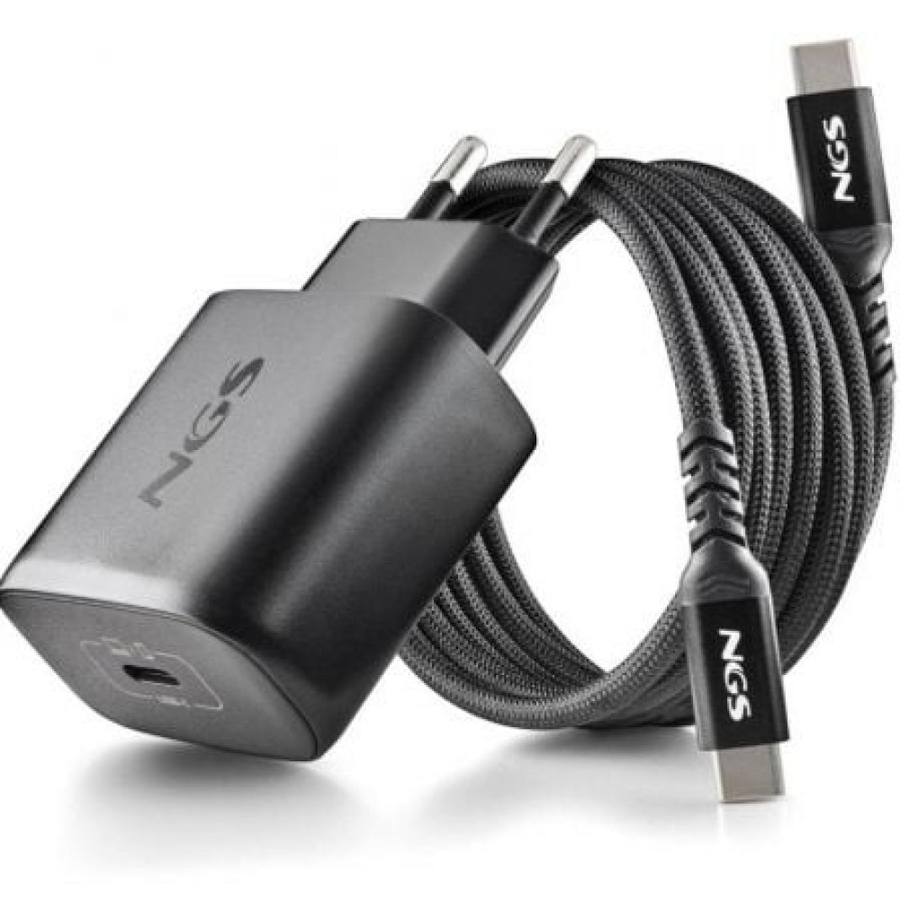 Cargador de Pared GaN NGS Era 65W/ 2xUSB Tipo-C/ 1xUSB/ 65WERA 65W BLACKCargador GaN de pared ultrarrápido de 65W con 3 Puertos: 2 USB-C + USB-ACargador GaN de pared con 2 salidas USB-C (PD & PPS) y una salida USB-A QC 3.0 de 65W de potencia máxima para cargar dispositivos de manera rápida y eficien..