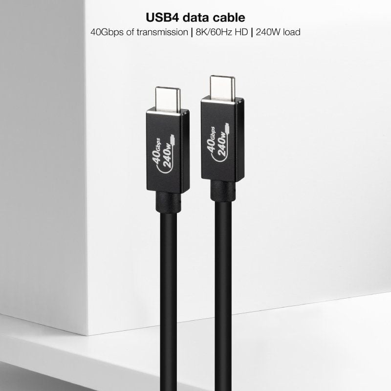 Cable USB 4 Gen 3x2 40Gbps 5A/240W, USB-C/M-USB-C/M, Negro, 1 m