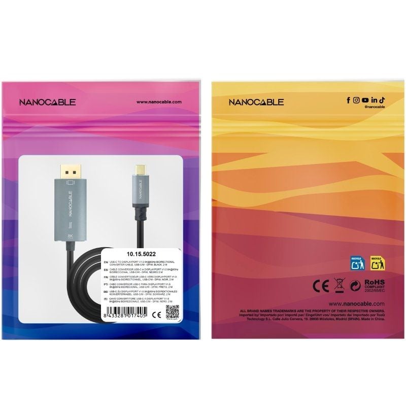 Contenido: 1 cable conversor USB-C a DisplayPort 8K bidireccional