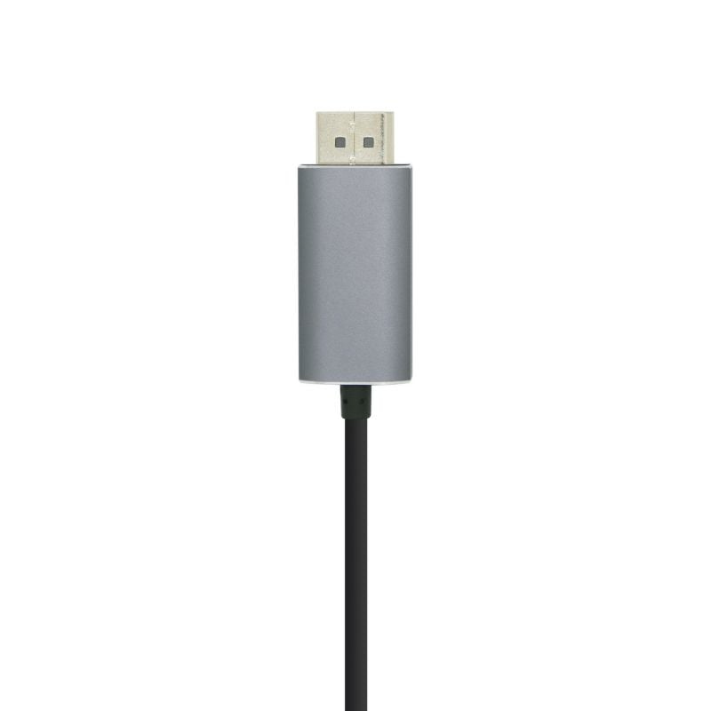 - Conversor USB-C a DISPLAYPORT, con conector USB-C macho en un extremo y DISPLAYPORT 4K@60Hz macho en el otro