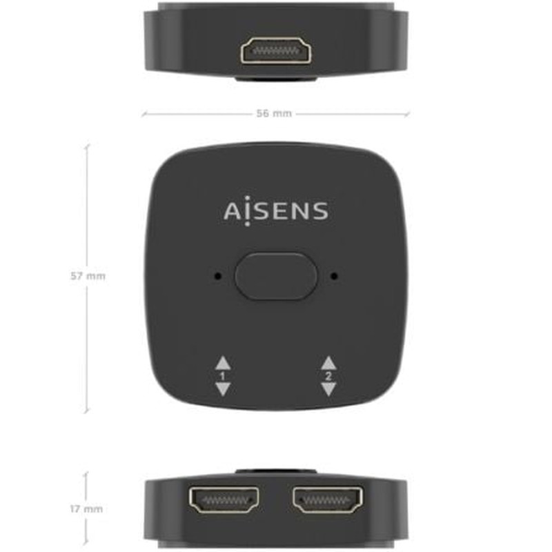 AISENS - HDMI CONMUTADOR SWITCH 4K@60HZ 2X1, NEGRO