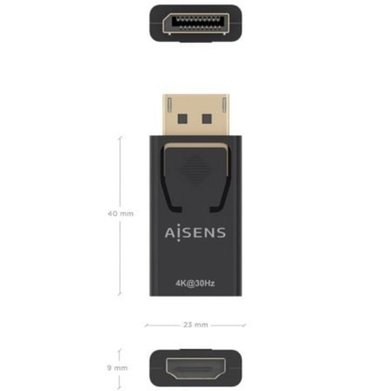 AISENS - CONVERSOR DISPLAYPORT A HDMI 4K@30HZ, DP/M-HDMI/H, NEGRO