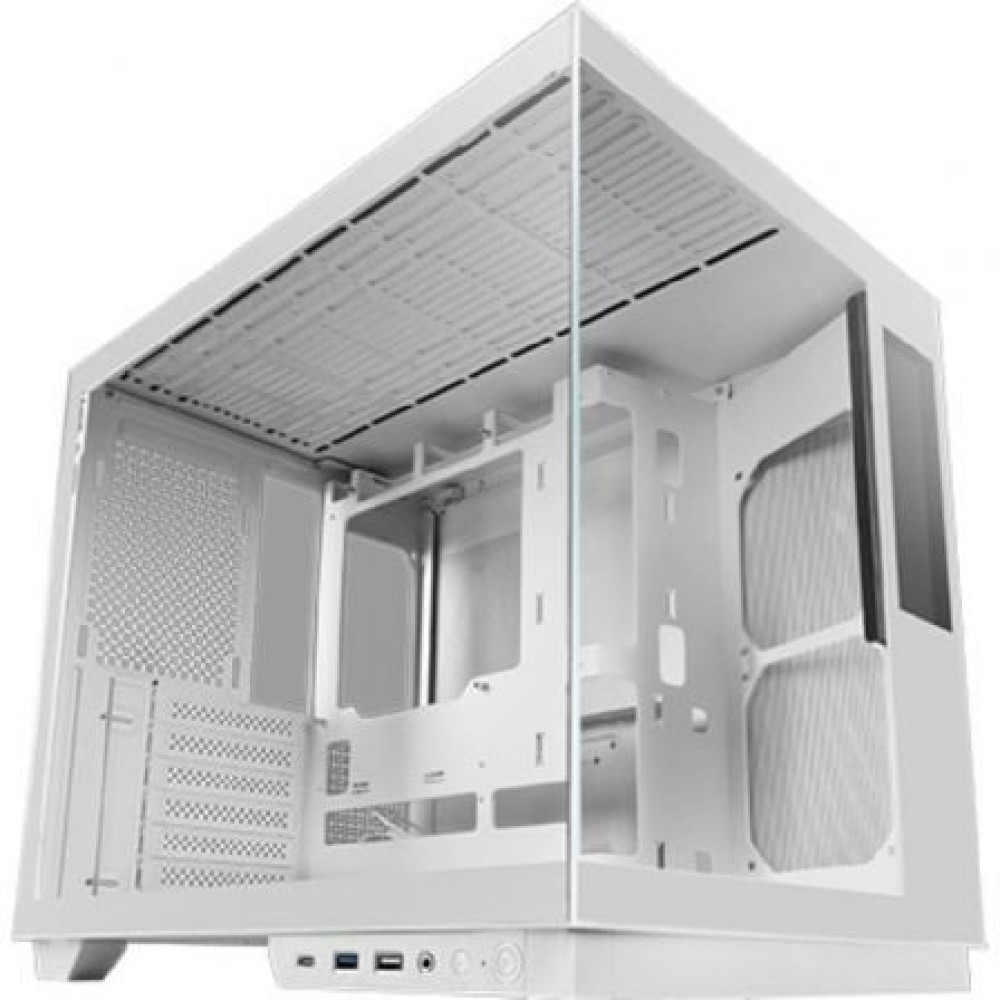 Su estructura de doble cámara optimizada separa la fuente de alimentación y el almacenamiento del resto de componentes. Esta organización mejora el flujo de aire, facilita el montaje y mantiene los cables ocultos, garantizando una estética impecable y un rendimiento térmico superior.