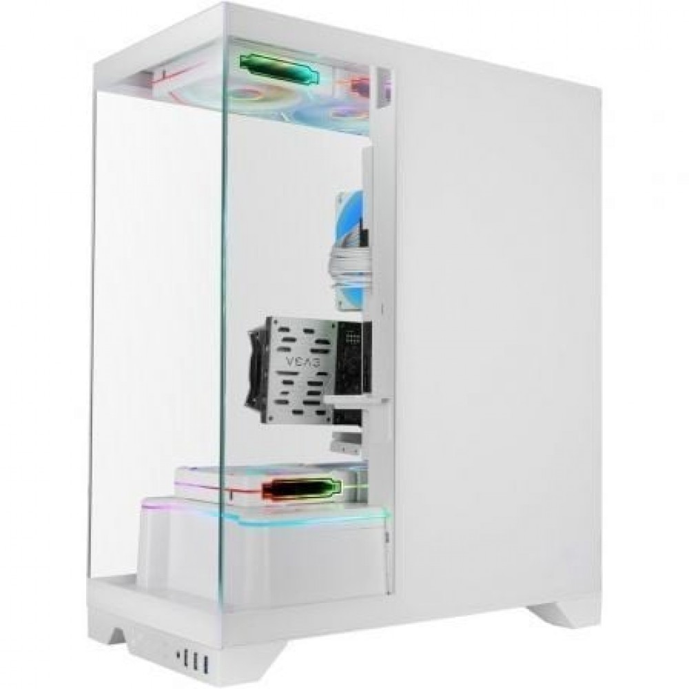 La MC-PRISMA ofrece una experiencia única al integrar tres paneles de cristal templado continuo sin marcos. Este diseño envolvente permite contemplar el interior desde múltiples ángulos, realzando cada componente con una nitidez y elegancia incomparables. Perfecta para configuraciones ARGB, convierte tu equipo en un espectáculo visual que refleja la personalidad y creatividad de cada usuario.