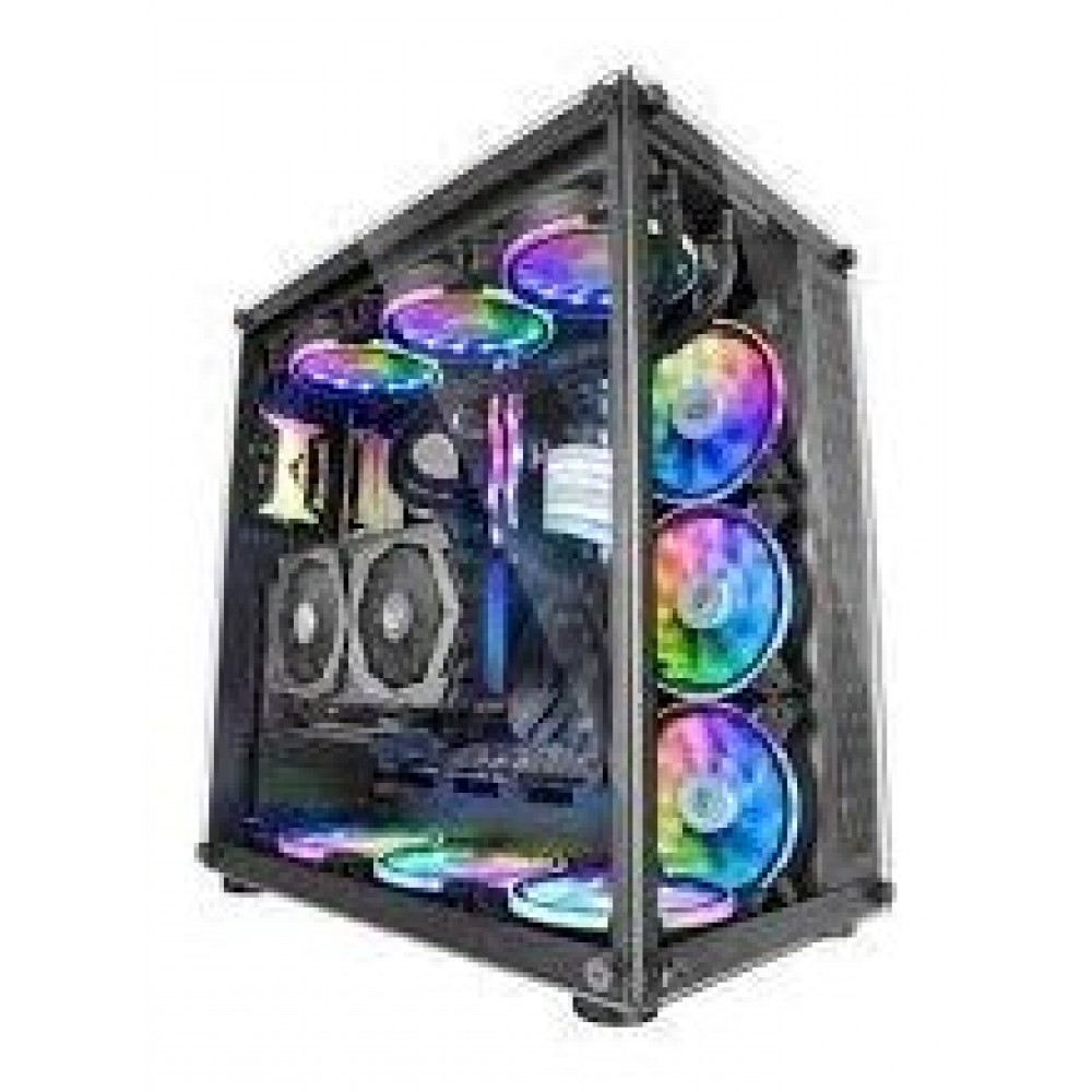 Cristal templado continuo sin marco, tamaño XXL E-ATX para las configuraciones más exclusivas. Con soporte hasta 10 ventiladores y refrigeraciones líquidas triples en varias posiciones.Cristal templado continuo sin marco. XXL E-ATX