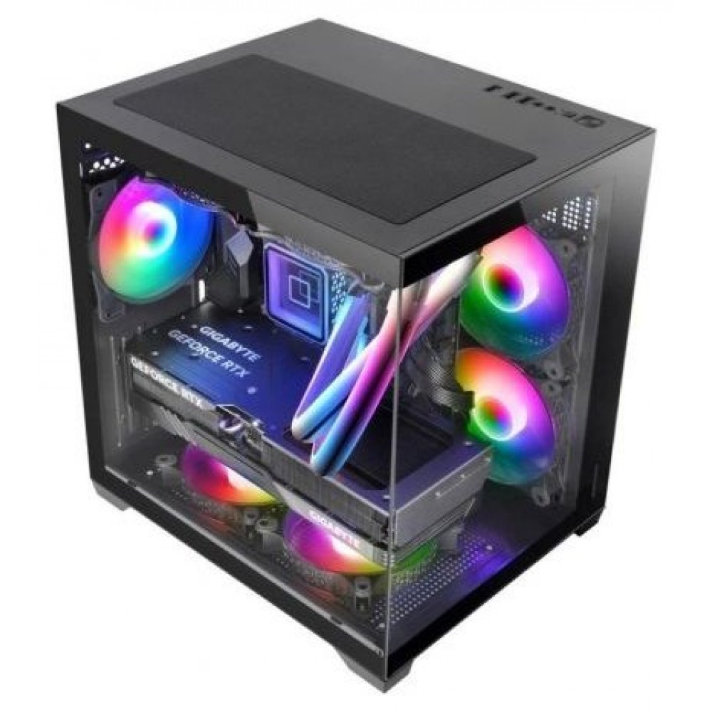 La minitorre MC-VIEW2 fusiona diseño vanguardista y prestaciones avanzadas en un formato compacto. Su cristal templado continuo en el frontal y lateral proporciona una visión panorámica del interior, resaltando cada componente con una estética impecable. Equipada con un ventilador trasero FRGB de 120mm preinstalado, proporciona una refrigeración eficiente desde el primer momento. Además, su sistema de gestión de cableado interno, compatibilidad con refrigeración líquida de hasta 240mm y soporte para hasta 7 ventiladores de 120mm aseguran un flujo de aire optimizado, manteniendo tu setup ordenado y eficiente