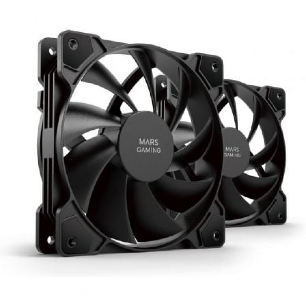 2x Ventiladores profesionales de 120mm ultra silenciosos FDB con diseño de 9 aspas y estructura optimizada. Gomas antivibraciones y alimentación dual mediante conexión directa a placa base o fuente de alimentación. Características principales:. VENTILACIóN SUPERIOR, SILENCIO ABSOLUTO. Excelente rendimiento de ventilación con el mínimo ruido gracias a su diseño único aerodinámico de las aspas, unos rodamientos de fluido dinámico FDB de larga duración y baja fricción y unas juntas de goma anti-vibraciones. Avanzada tecnología en ventiladores a tu alcance.. . KIT DE 2 UNIDADES. Maximiza la refrigeración al mejor precio con los dos ventiladores incluidos en el KIT.. . CONECTIVIDAD 3PIN+4PIN. Conéctalos tanto a la fuente de alimentación como a la placa base. Sin limitaciones.. . Especificaciones:. . Dimensiones: 120x120x25mm. Peso: 110g. Tamaño: 120mm. Nº de aspas: 9. Presión del aire: 1.1mm- H2O. Rodamientos: Hidráulicos. Velocidad: 1200 ± 10% RPM. Flujo de aire: 38CFM. Nivel sonoro: 12dB. Potencia máx.: 1.44W. Conexión: 4 pines Molex / 3 pines. Voltaje: DC12V. Corriente: 0.12A