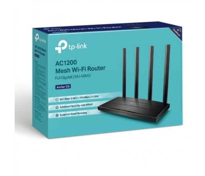 TP-LINK Archer C6. Tipo de conexión WAN: RJ-45. Banda Wi-Fi: Doble banda (2,4 GHz / 5 GHz), Estándar Wi-Fi: Wi-Fi 5 (802.11ac), Tasa de transferencia de datos WLAN (máx.): 867 Mbit/s. Tipo de interfaz Ethernet LAN: Ethernet rápido, Ethernet LAN, velocidad de transferencia de datos: 10,100 Mbit/s, Tecnología de cableado: 10/100Base-T(X). Algoritmos de seguridad soportados: 64-bit WEP,128-bit WEP,WPA,WPA-PSK,WPA2,WPA2-PSK. VoIP protocolos: IPv4, IPv6