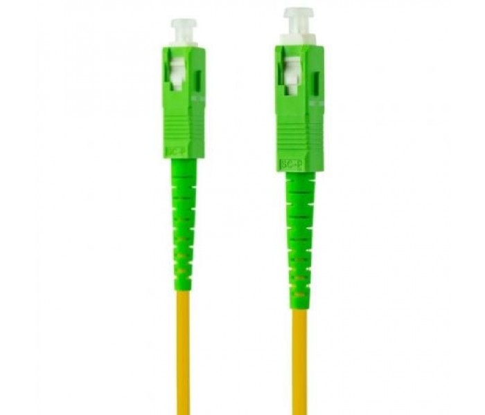 Especificaciones:. . Se utiliza para conectar la roseta de compañía de internet al router. Tipo de fibra: Monomodo G657A2 . Tipo de conector: SC/SC. Tipo de pulido: APC/APC. Diámetro exterior: 3 mm. Pérdida de inserción: <0.3dB. Pérdida de retorno: >;50dB. Sección del núcleo: 9/125 micrones. Revestimiento LSZH. Longitud: 2 metros. Color: Amarillo. NormativaS: RoHS. Test de Funcionamiento: 100% testado